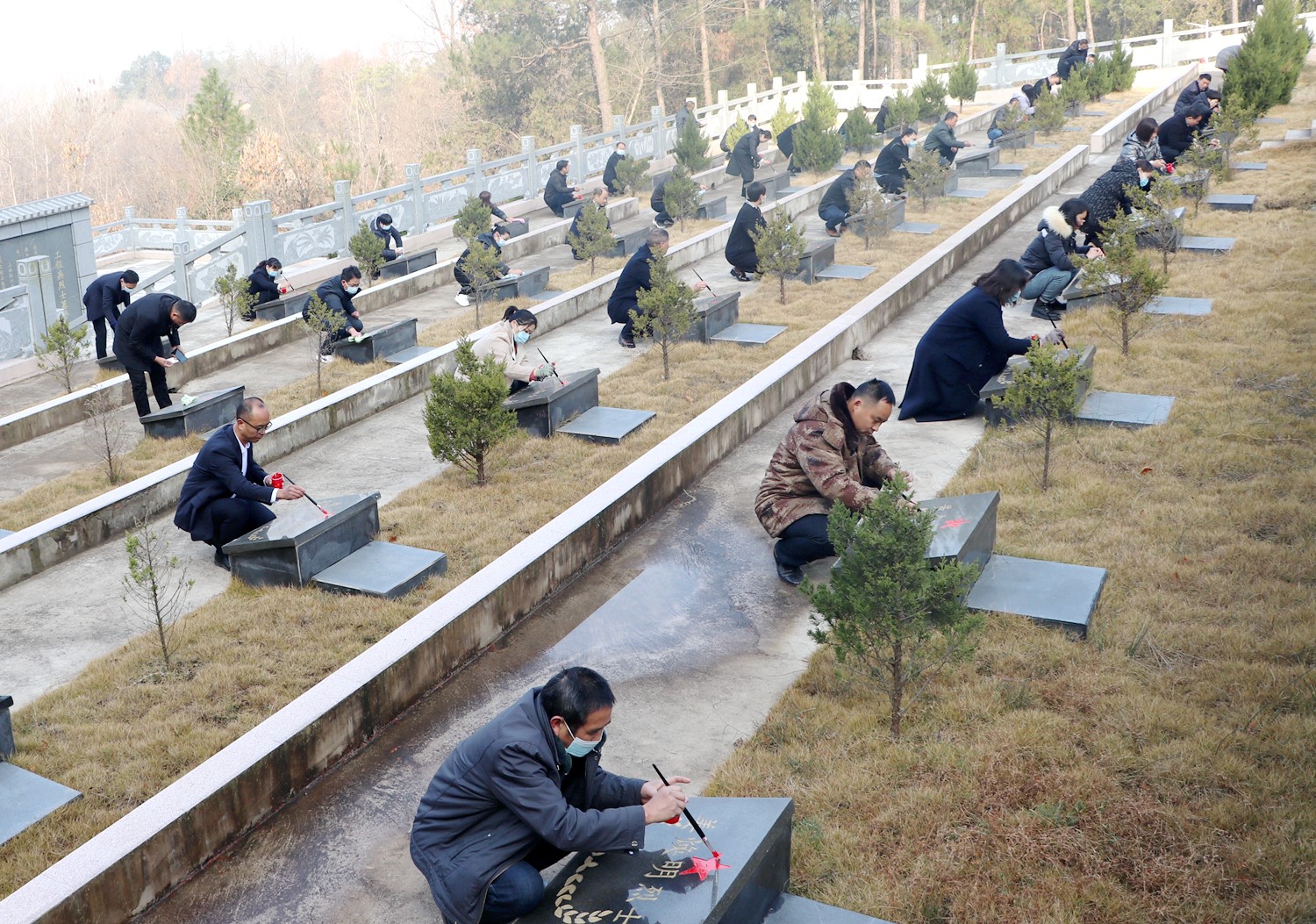 日前,部分县直单位机关党支部赴烈士陵园联合开展“烈士为我洒热血 我为烈士墓碑描红”主题教育。全体党员向烈士默哀,为红军十八烈士纪念墓敬献花篮和鲜花,重温入党誓词,聆听英雄事迹,为189位烈士墓碑上的红色五角星“描红”,感悟英勇无畏的革命精神。(宋钱 摄)