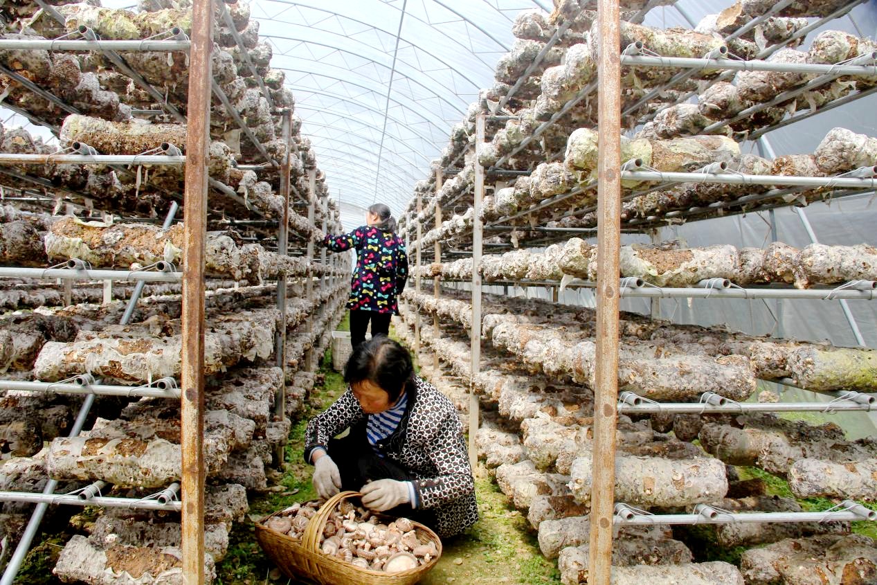 近日,沙河乡鹰嘴石村食用菌产业园区种植大棚里,村民正在采摘香菇。今年以来,该乡持续擦亮“香菇特色小镇”名片,全乡12个村全部建有香菇产业大棚,发展袋料香菇580万袋、椴木香菇1.5万架,为乡村振兴奠定坚实基础。