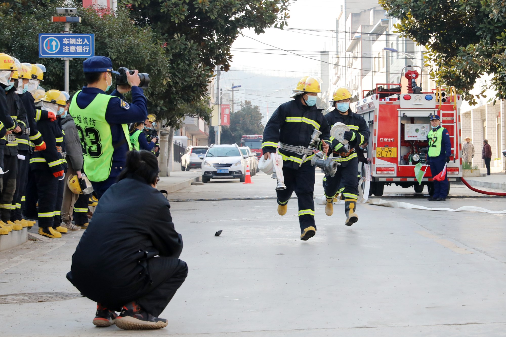 为扎实做好冬季火灾防控工作,12月17日,我县组织22支专兼职消防队开展冬季消防比武竞赛,通过水枪操、水打靶、消防知识竞赛等项目,检验专兼职消防队员业务技能水平和灭火救援综合能力。副县长邓紫微参加活动。(陈晓旭 摄)