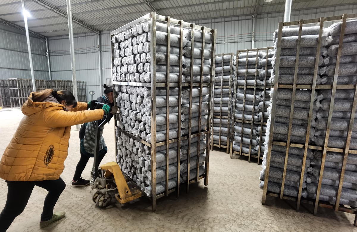 12月13日,白鹤镇黄杨村食用菌产业基地技术人员在制作、装运袋料香菇筒。时下,房县香菇、黑木耳、羊肚菌等食用菌栽培如火如荼,为助力乡村振兴、村民增收提供强力支撑。(张启龙 摄)