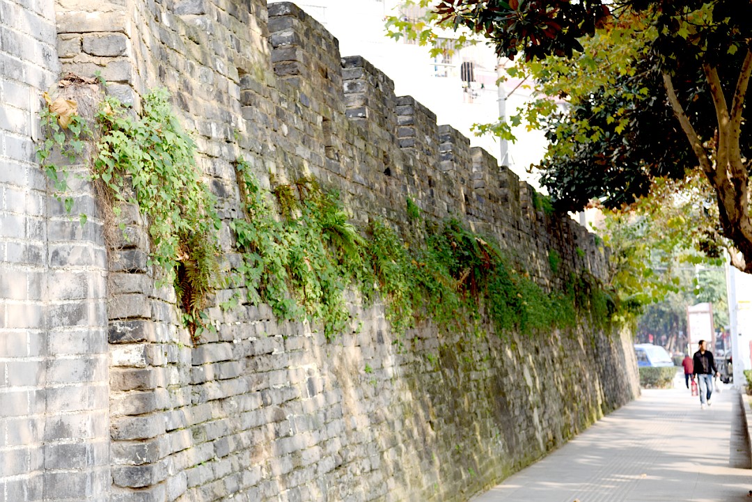 城墙北墙砌筑方式下部为砖墙,上部为板筑夯土墙,这一建筑风格极为独特。至今城墙北墙体还见有用早期墓砖以及有铭刻 “三闾书院”“丁未”“房城”等字样墙砖,其蕴含着丰富的历史文化信息,历次的维修见证古城的沧桑。