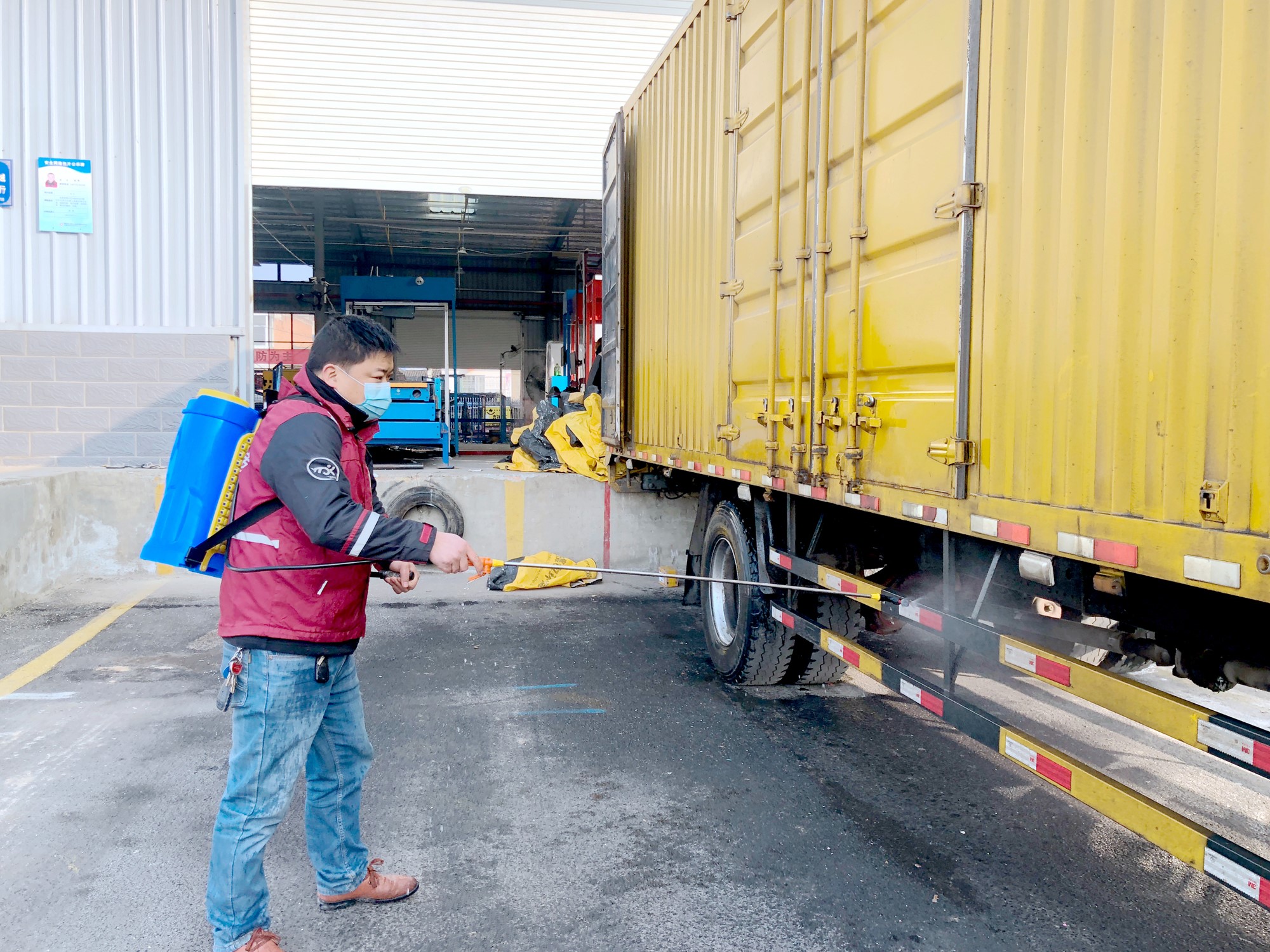 近日,县物流园工作人员正在对运送快递的车辆进行全面消杀。临近春节,县物流园日均派件达到3万余吨,我县做实、做细货运物流行业疫情防控工作,强化各项防疫措施落实,筑牢疫情输入坚固防线。