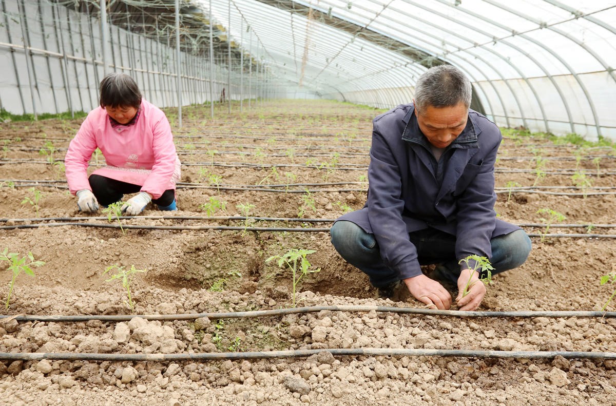 近日,化龙堰镇长望村农民正在大棚蔬菜微水滴灌基地为西红柿苗补水。我县补齐灌区、水源短缺区节水工程短板,“量水定做”滴灌、微喷、节水渠等节水设施,带动村民增收致富。(张启龙 刘凤 摄)