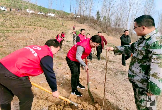 3月5日,青峰镇组织机关干部职工、民兵、新时代文明实践志愿者、社区干部群众共计200余人,到青峰街社区三里沟、白马沟进行义务植树。经过技术人员验收,当天共栽种下2000多株树苗。(李厚龙 何路 摄)