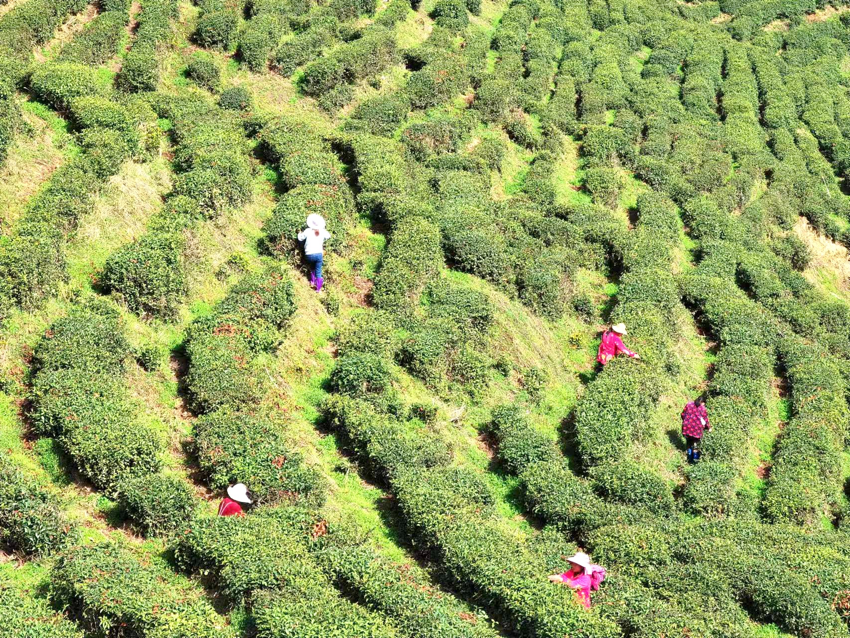 本报讯 (通讯员李博 徐江垚) 四月春光无限好,又到一年采茶季。眼下,正是“春茶”采摘黄金时期。4月11日,笔者漫步在窑淮镇窑场村茶山的游步道上,漫山遍野的茶树郁郁葱葱、纵横交错,翠绿的嫩芽矗立枝头,三五成群的茶农身背茶筐,穿梭在茶树丛中,嫩芽随着指尖轻快地落入篮筐,不一会儿,茶筐就装满嫩嫩的绿芽,茶农的脸上露出丰收的喜悦。
