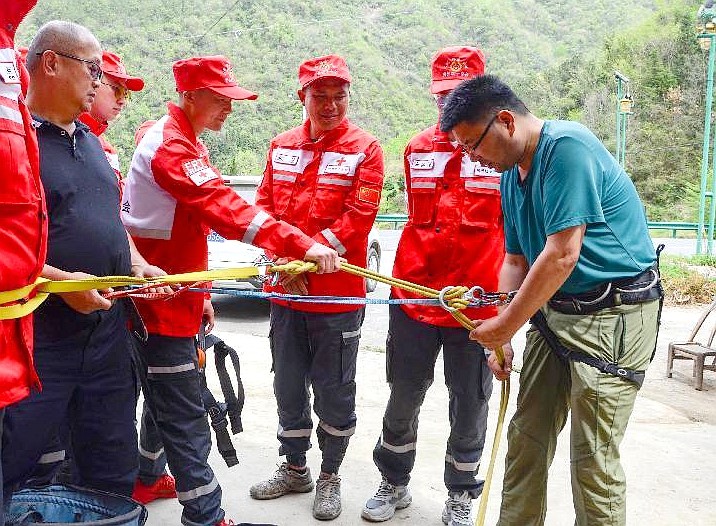 近日,县红十字会结合正在开展的“岗位大练兵”活动,组织赈济救援队队员在神农大峡谷景区就单人绳索技能、山区紧急救援等方面知识开展培训演练,以检验救援队景区救援应急处置能力,提高救援人员在峡谷救援、配合和快速反应能力。 (陈忠海 摄)