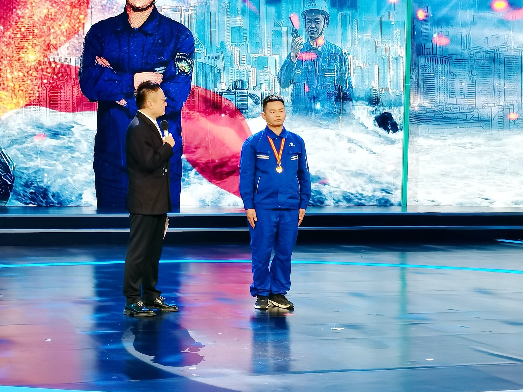 袁格兵(右)在现场接受主持人采访