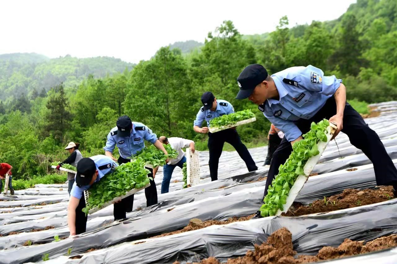 近日,县公安局白鹤派出所民警帮助东浪村烟农胡万良移栽烟苗。当前正是烟苗移栽时期,白鹤派出所民警在走访中了解到,胡万良因扩大烟叶种植面积、工人招聘不到位等,烟苗移栽迟迟得不到解决。得知情况后,该所组织民警帮助东浪村烟农移栽烟苗,减轻烟农负担。(杜中良 摄)