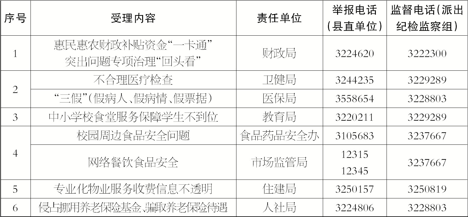 根据中央和省、市纪委监委工作安排,县纪委监委将联合7家县直单位开展2022年群众身边腐败和作风问题专项整治工作,现将整治内容及举报方式公告如下。