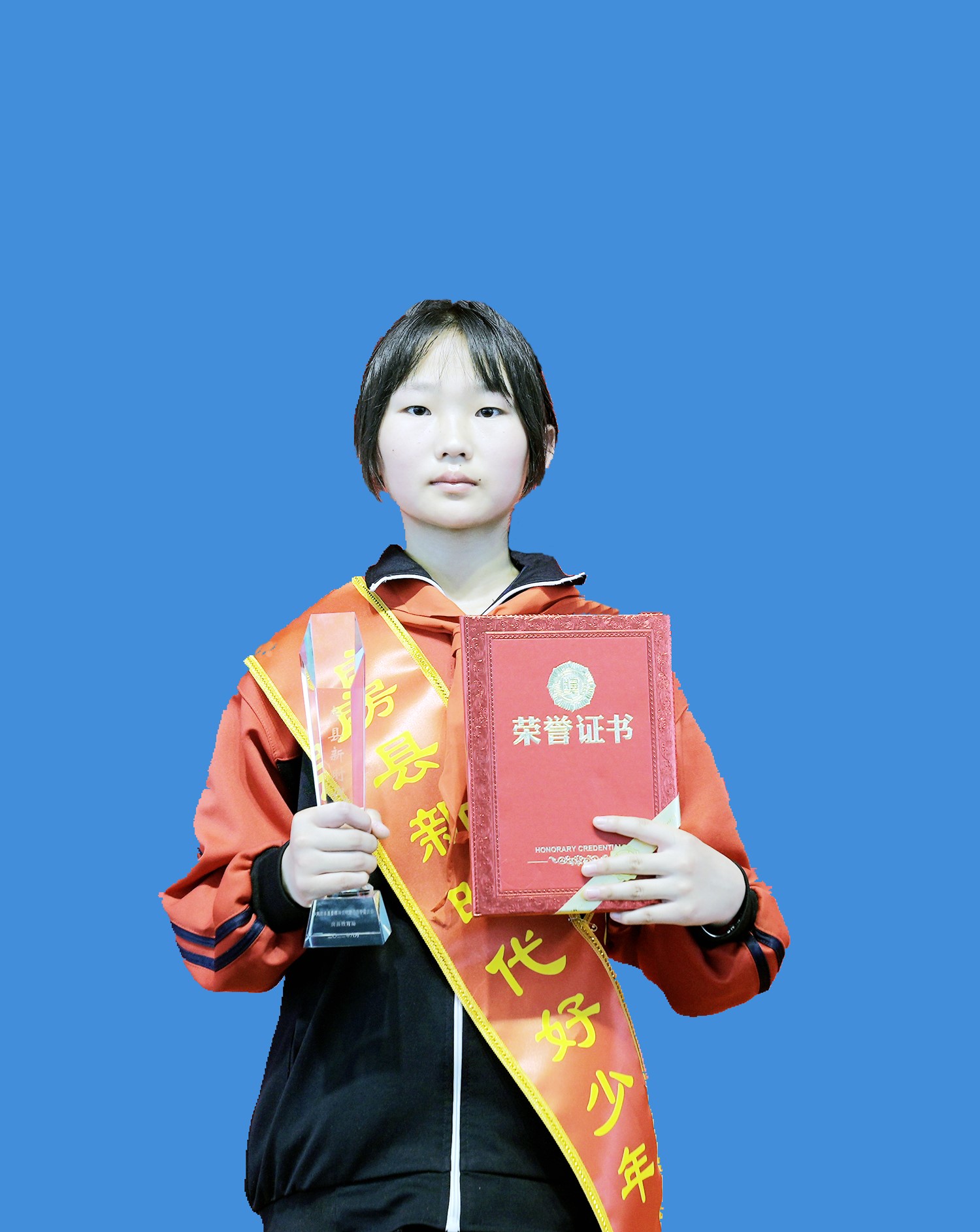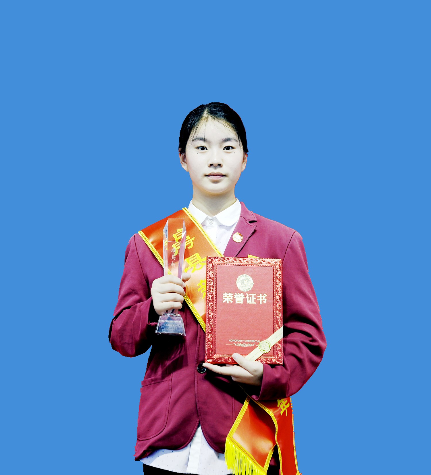 她乐于助人,展现了新时代青少年乐观进取、向上向善的靓丽风采,成为同学邻里的模范榜样;她诚实稳重谦逊,作为一名志愿者,在助人的同时自己也得到成长;在用爱奉献世界的同时,她也从中得到思想上的升华。