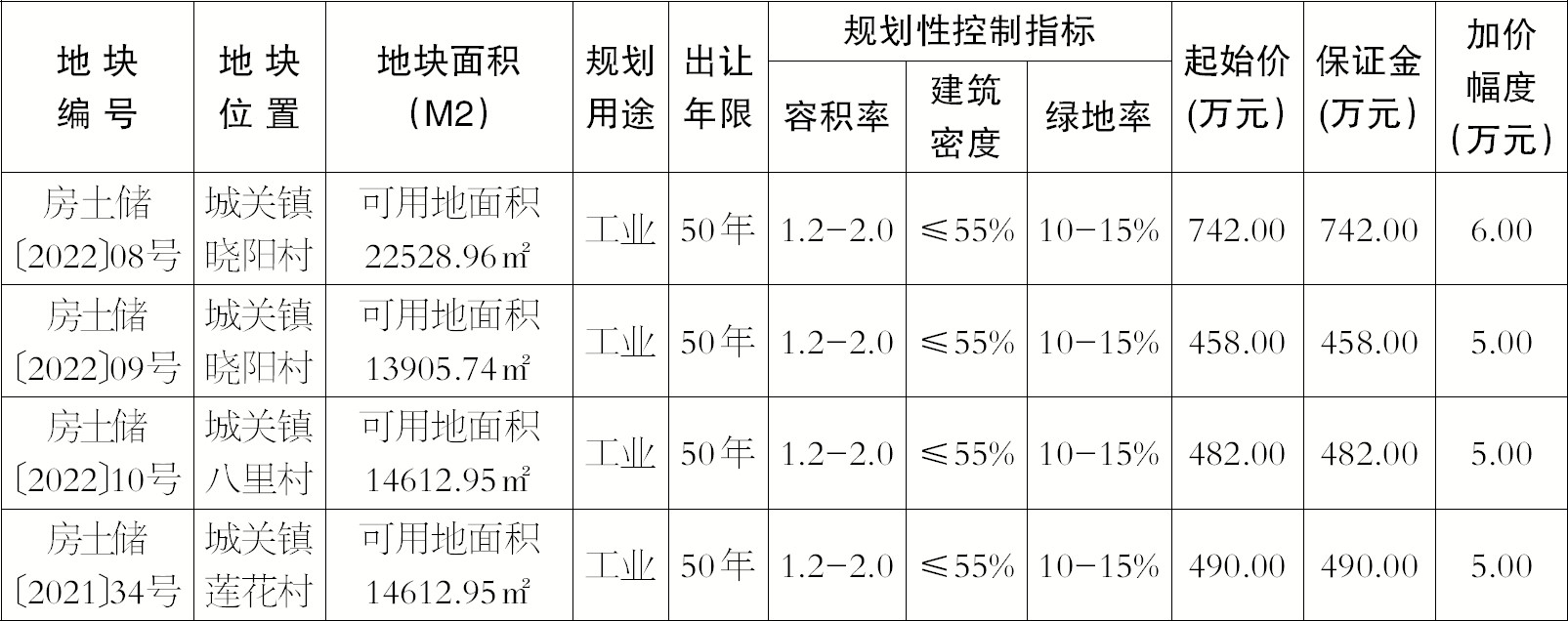 2、本次出让的宗地以现状条件出让,房土储〔2022〕08号、〔2022〕09号、〔2022〕10号、〔2022〕34号宗地由房县工业园区管理委员会负责交地。