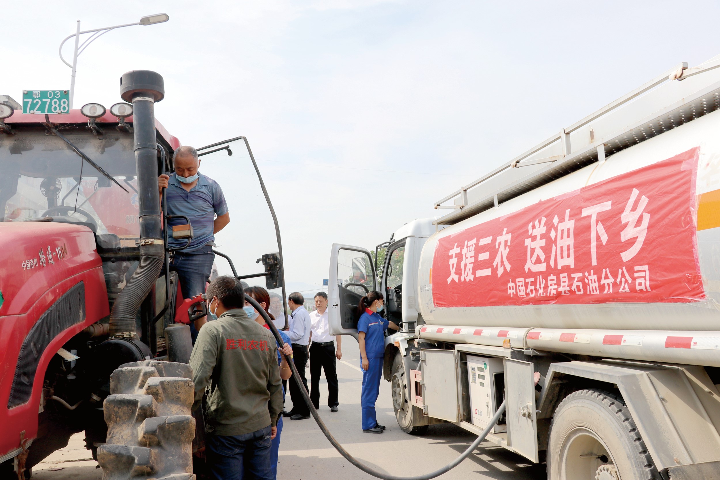 近日,中国石化十堰分公司联合十堰农机中心在我县开展惠农服务助力乡村振兴活动,面向全县从事农业生产经营组织和农机手提供柴油优惠,单次加油每升优惠额度高达9%,以保障“三夏”“双抢”和“三秋”等重要农时季节农机作业用油供应需求。(宋钱 邢玉皎 摄)