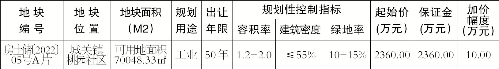 2、本次出让的宗地以现状条件出让,房土储〔2022〕05号A片宗地由房县城关镇人民政府负责交地。