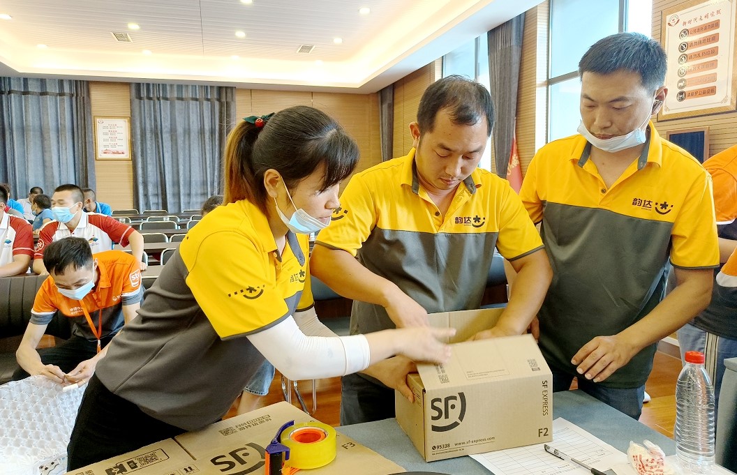 近日,房县首届快递行业职业技能大赛举行,40名快递员同台竞技。比赛分为现场理论知识考试和实际操作,实际操作部分设有品牌形象展示、快件包装、徒手称重等,范围包括收寄规范、禁限寄物品识别、快件交接、快件投放规范等内容。最终,中国邮政集团有限公司湖北省房县分公司获得第一名,房县顺丰快递获得第二名,房县韵达快递获得三等奖。(谢龙爽 散静 摄)