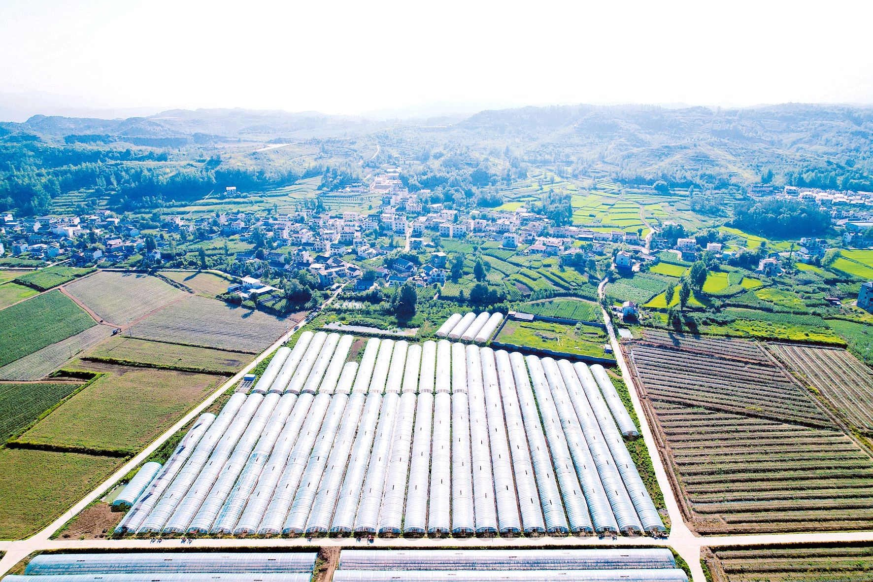 在军店镇中村村一排排有机蔬菜大棚整齐划一,大棚内蔬菜长势良好。近年来,该村充分发挥自身优势,引进多家市场主体,全力打造千亩蔬菜产业片区,积极发展订单农业,带动120余名村民增收。 (全正 摄)