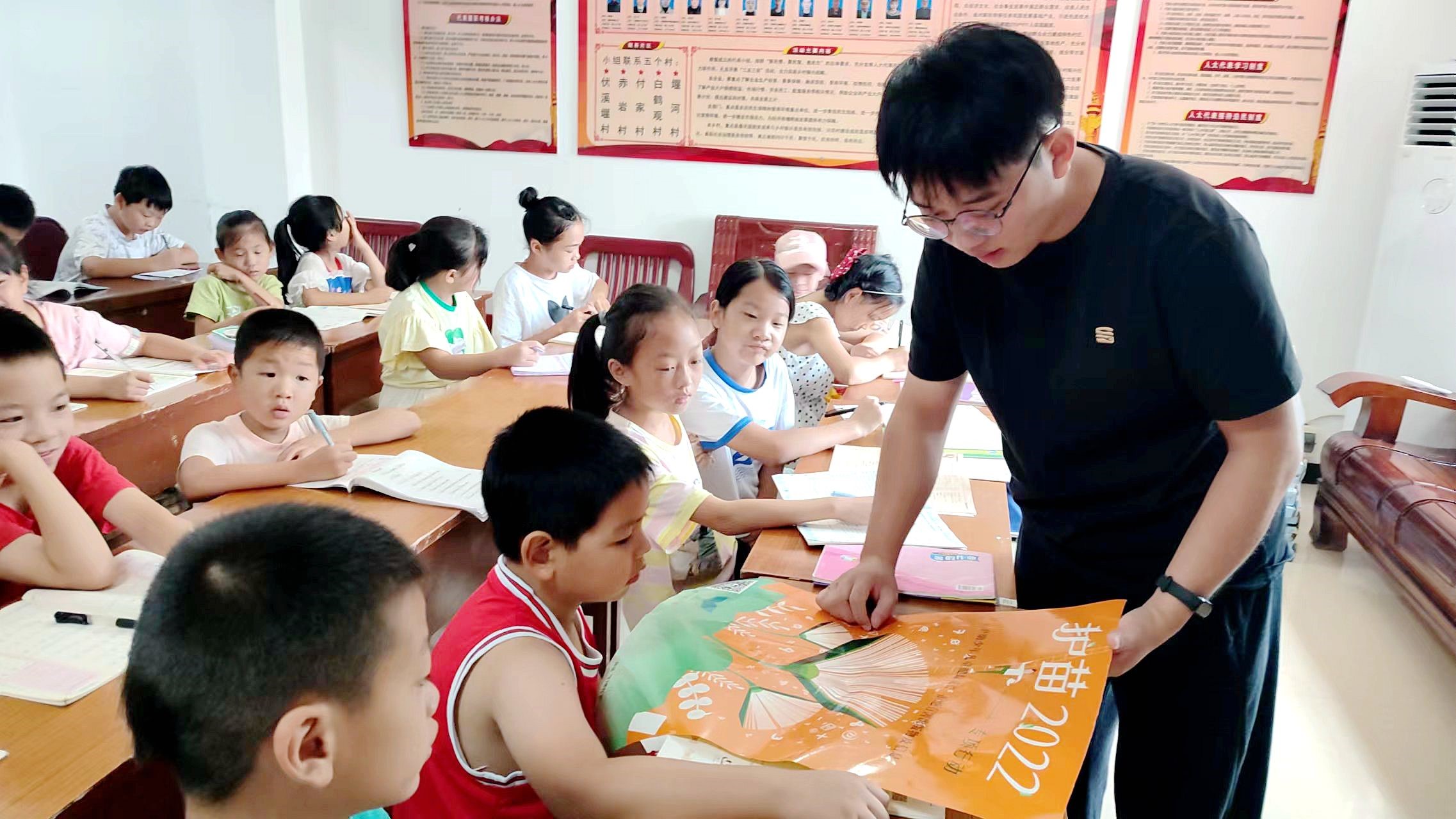 近日,白鹤镇组织开展了“护苗2022·绿书签”专项行动。 在该镇“希望家园”内,老师向孩子们讲解“护苗·绿书签”行动的意义,播放“绿书签行动”宣传视频,并一起制作绿书签手绘画,在寓教于乐、动手实践中培养他们爱读书、读好书、善读书的意识。(王林锒 摄)