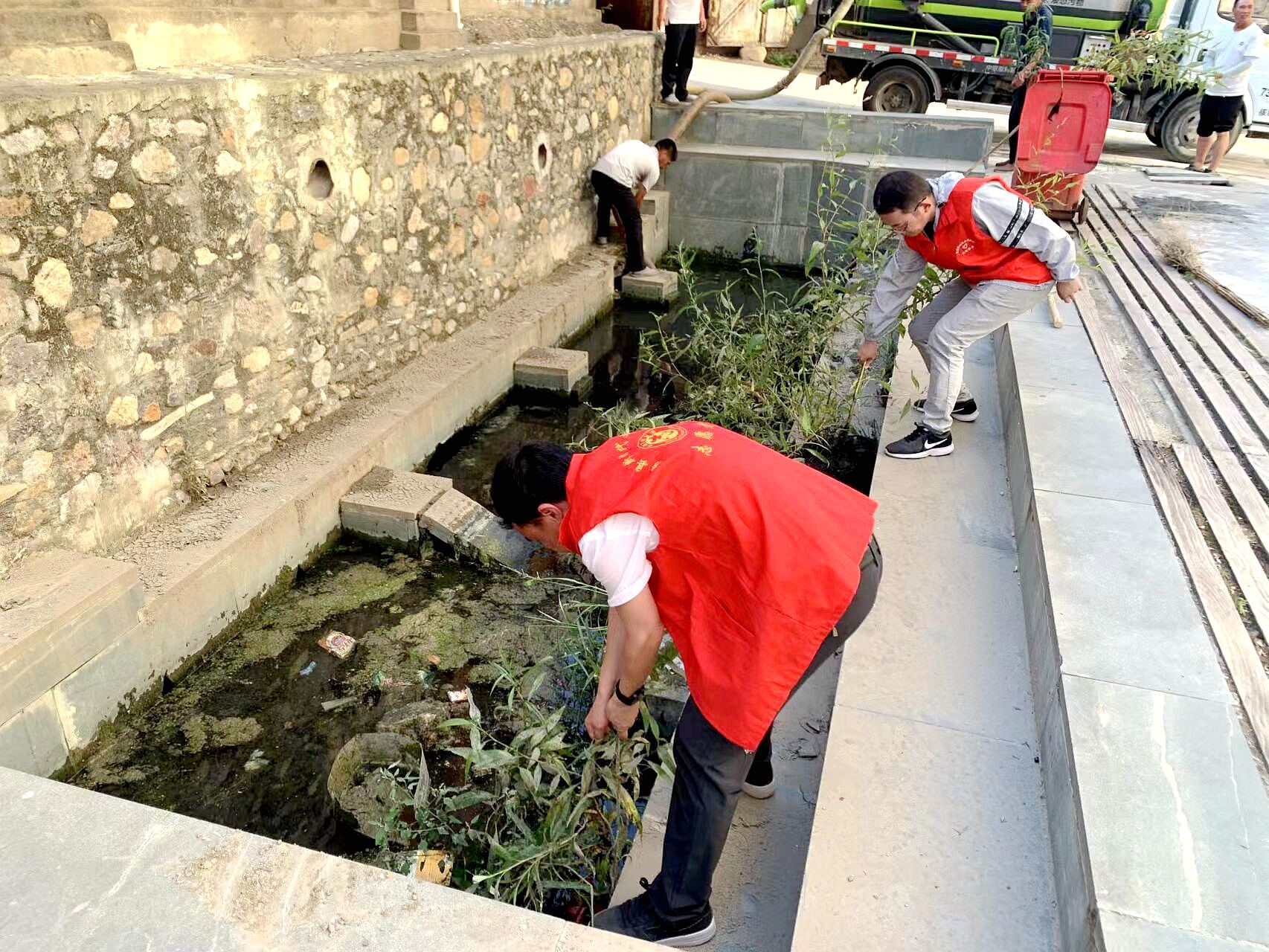 近日,县委编办工作人员对城关镇凉水泉路一泉池进行清理。在“下基层、察民情、解民忧、暖民心”实践活动中,县委编办了解到该泉池长期被垃圾堵塞,水池内杂草丛生,淤积的污水严重影响群众生活这一情况后,迅速制定整治方案,寻找专业队伍对泉池周边进行清理,为群众排忧解难。 (黄凡 摄)