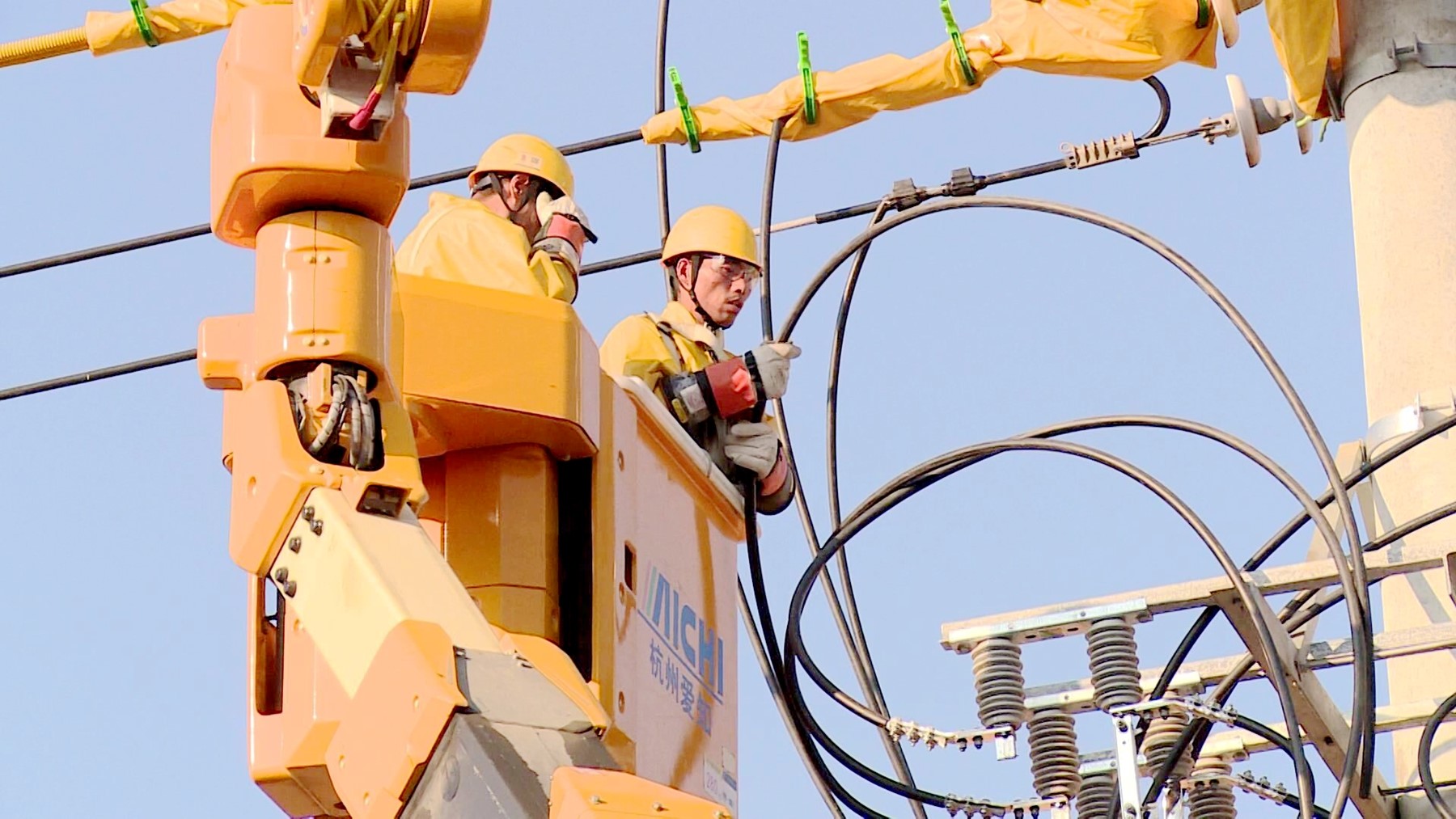 带电作业就是在高压线路、设备上不停电进行计划检修、缺陷处理作业,是保证居民用电的有效措施。但是,带电作业需要穿上厚厚的绝缘服、戴上绝缘手套。“高温下,体感会更热。”在太阳的炙烤下,高温下的斗臂箱内,温度高达50摄氏度,没几分钟,豆大的汗珠从他们的脸颊上滑落,身上的长袖工服也早已被汗水浸透,紧贴在皮肤上。