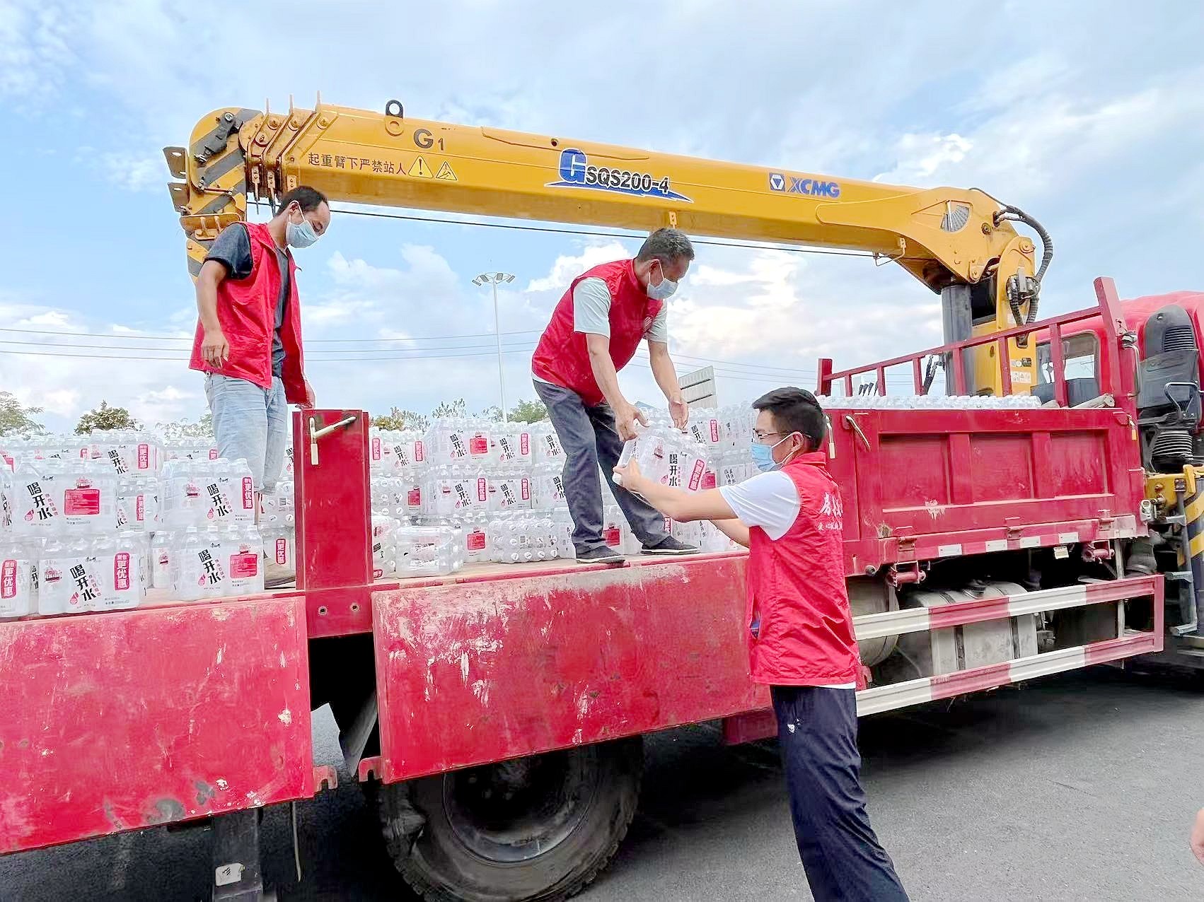 8月16日,县妇联联合房县大爱义工向坚守在防疫一线的工作人员捐赠900余件矿泉水,分别送往北关社区、白土社区、高速路口、诗源华府、物资小区等多个核酸采样点,助力疫情防控。 (何赛男 摄)