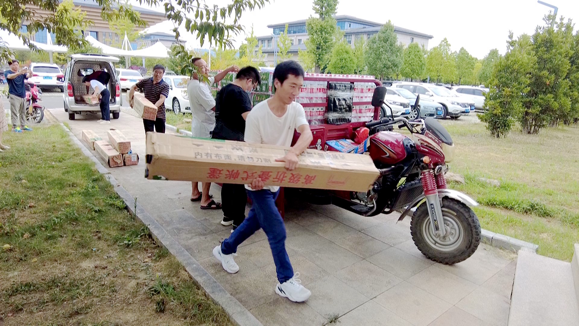 8月16日,梨花村酒业有限公司房县区域通过县创文办,向志愿者捐赠100件饮用水和15个遮阳棚,为志愿者参与抗疫和创文工作提供保障。这批饮用水和帐篷将尽快根据志愿者工作需求,分发到工作一线。 (李硕 摄)