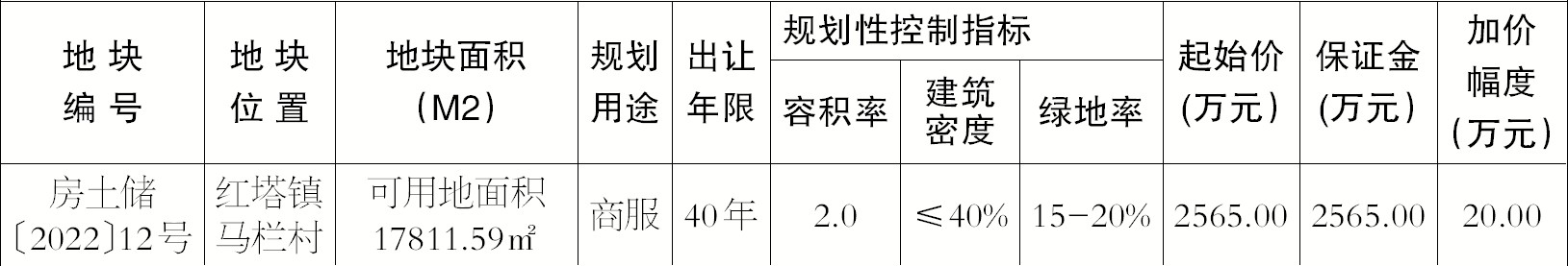 2、本次出让的宗地以现状条件出让,房土储〔2022〕12号宗地由房县红塔镇人民政府负责交地。
