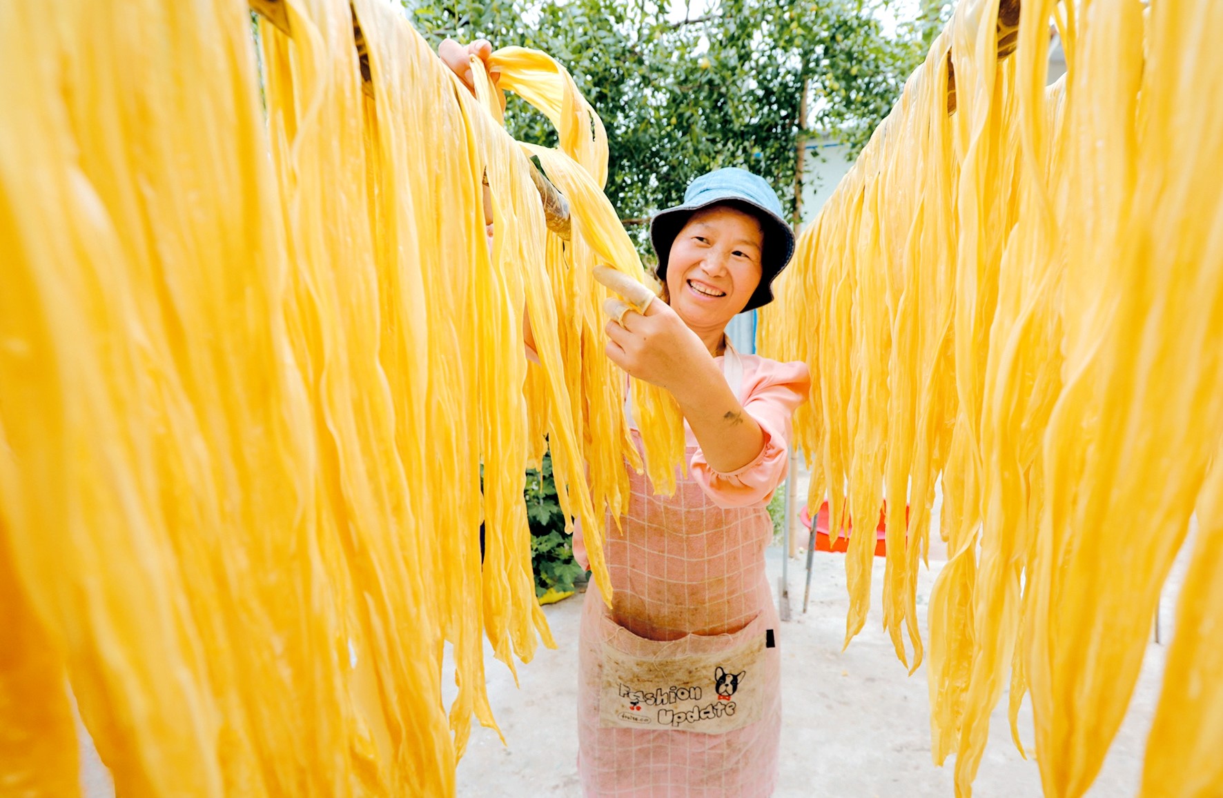近日,白鹤镇赤岩村村民袁道玉在加工、晾晒手工豆油精。据了解,房县豆油精为国家地理标志产品,俏销日本、越南、韩国等国外市场,年均销售收入达15亿元,成为农民增收致富的重要产业。(张启龙 摄)