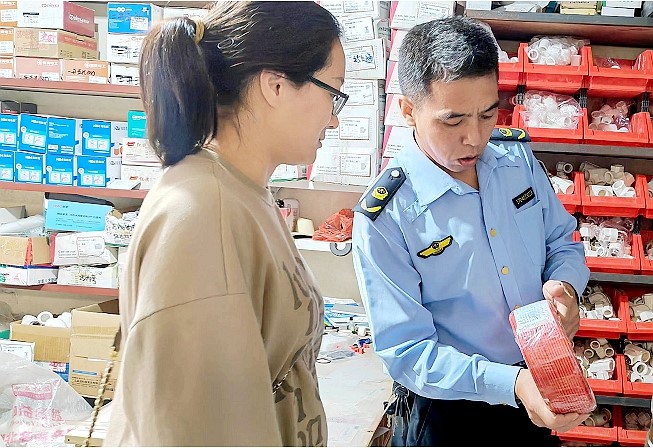 近日,县市场监管局组织开展强制性产品认证检查,重点检查燃气灶具、儿童玩具等产品是否存在未经认证擅自进行销售或在经营活动中使用、是否按规定使用认证标志等情况,严厉打击和查处无证销售、伪造、冒用,买卖和转让认证证书和认证标志等行为。活动中,共检查相关企业385家次,发现违法违规问题10起并依法立案调查。(刘珊珊 摄)