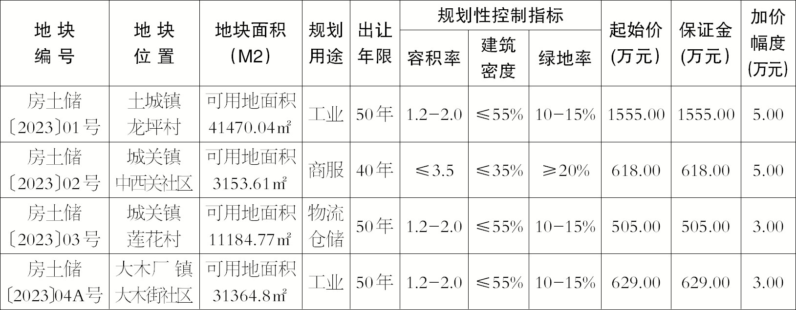 2、本次出让的宗地以现状条件出让,01号宗地由土城镇人民政府负责交地;02号宗地由城关镇人民政府负责交地、03号宗地由自然资源和规划局负责交地;04A号宗地由大木厂镇人民政府负责交地。