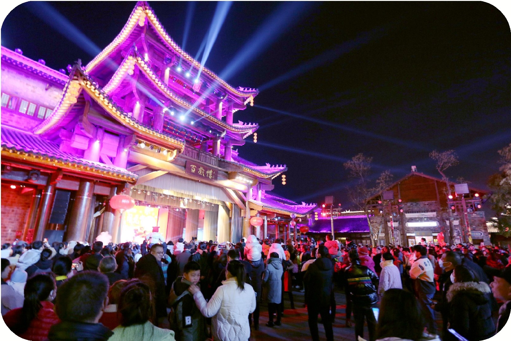 百戏楼前,人头攒动。(朱爱东 摄)