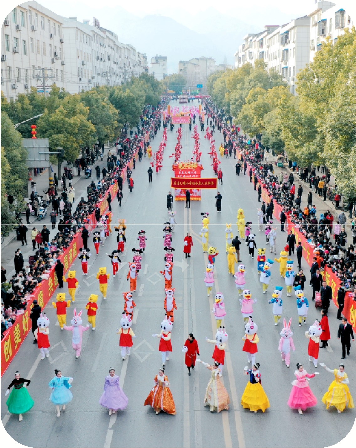 2月3日,房县城区彩旗招展、锣鼓喧天,阔别三年的正月十三民间文艺大巡游活动举行。33支特色民俗文化巡游方队、19辆花车、2000余名演员依次登场,盛装巡游,吸引数十万名群众夹道观看,浓浓的年味儿溢满全城。