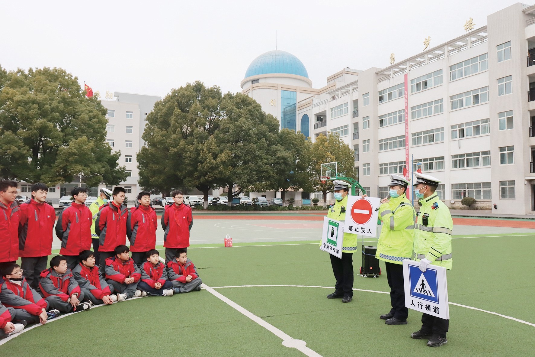 近日,县交警大队民警走进县实验中学,教学生认识交通安全警示牌及交警手势操,让学生们了解放学、乘骑车、过马路等注意事项,引导他们自觉遵守交通法规,养成文明交通习惯,进一步增强师生安全文明出行意识。