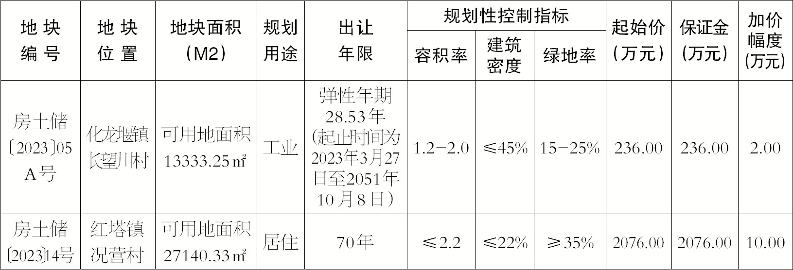 2、本次出让的宗地以现状条件出让,05A号宗地由化龙堰镇人民政府负责交地;14号宗地由房县工业园区管理委员会负责交地。