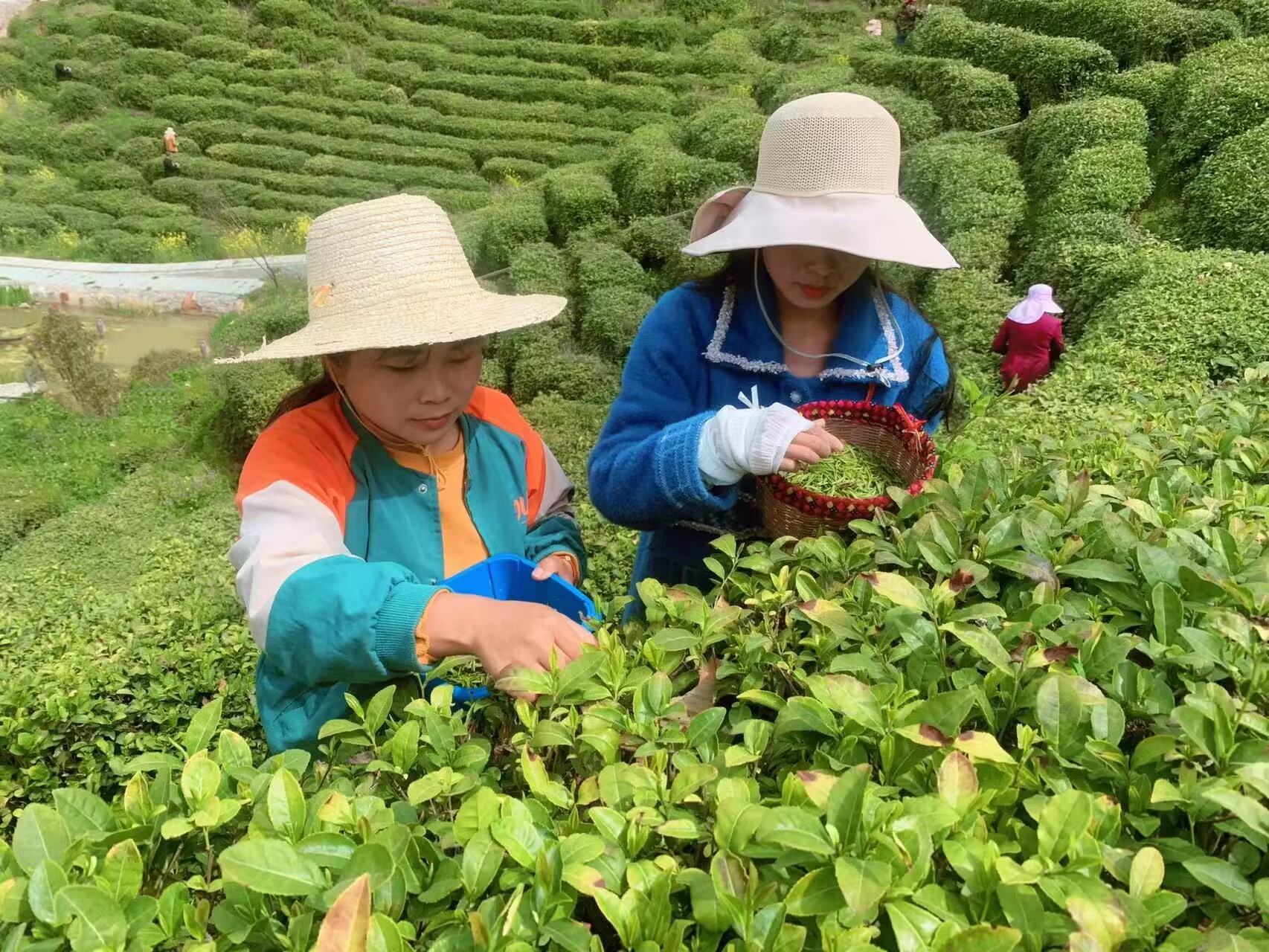 沐浴着春光,三五成群的茶农挎上竹篓穿梭在茶树间,随着灵巧的指尖轻快飞入竹篓。“我们来采茶已经有10多天了,每天能采摘7斤左右,每天都能挣230元左右,感觉还不错。”采茶工人王显荣一边采茶一边和笔者聊起采茶收入。由于家里有老人和学生需要照顾,无法外出打工,平时一有时间就来茶园打零工,采茶、施肥、除草、修剪等工作,既照顾了家庭又能挣些钱补贴家用,对于家门口的这份工作,王显荣很是满意。