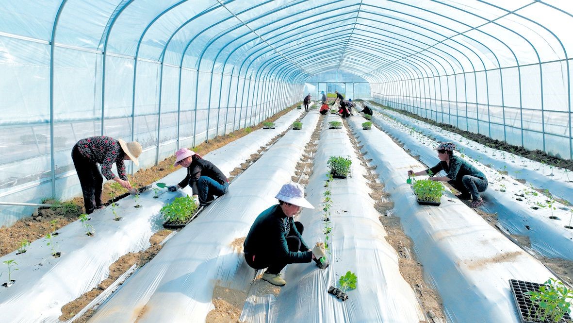 日前,化龙堰镇汤峪村蔬菜大棚里,农民忙着移栽辣椒苗。近年来,我县采取“政府搭台+金融唱戏+市场主体带动”模式,发展规模型蔬菜、中药、茶叶等地方特色农业产业,全县5万多名农民实现在家门口就业致富。 (张启龙 摄)