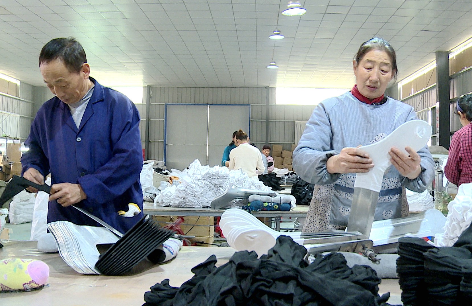 近日,记者在白鹤镇卓琳袜业有限公司生产车间看到,几百台织袜机轰轰作响,工人各司其职,一派忙碌。该公司产品主要为外贸出口,采用订单式生产,带动了当地留守妇女和老人在家就业、增收,助力乡村产业振兴。(鲁一帆 摄)