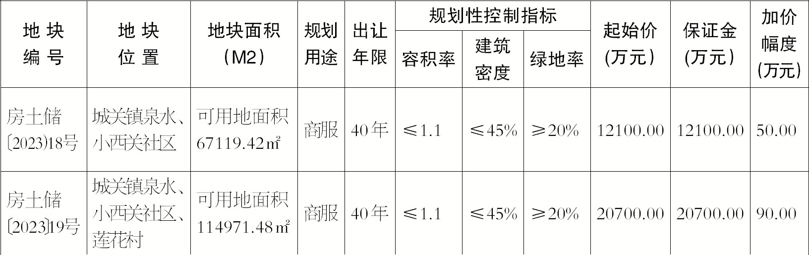 2、本次出让的宗地以现状条件出让,18号、19号宗地由城关镇人民政府负责交地。
