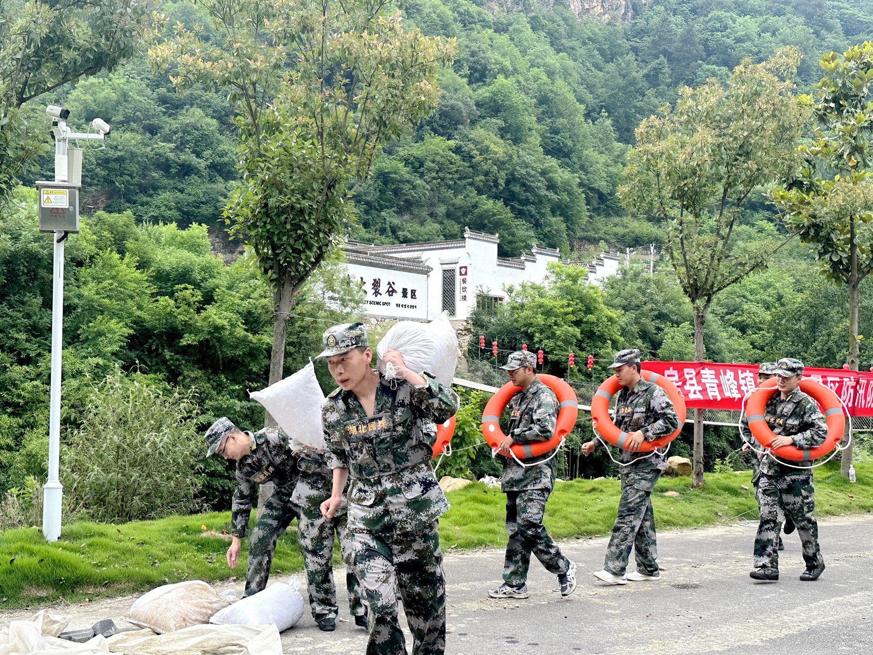 近日,青峰镇组织各单位部门在青峰大裂谷景区开展防汛应急演练。演练以多日强降雨导致泗河沿岸出现险情、受威胁区域人员需转移安置为背景,对青峰镇山洪灾害防御预案进行了实地演练,切实提高了青峰镇各单位部门防汛救援能力和反应速度。