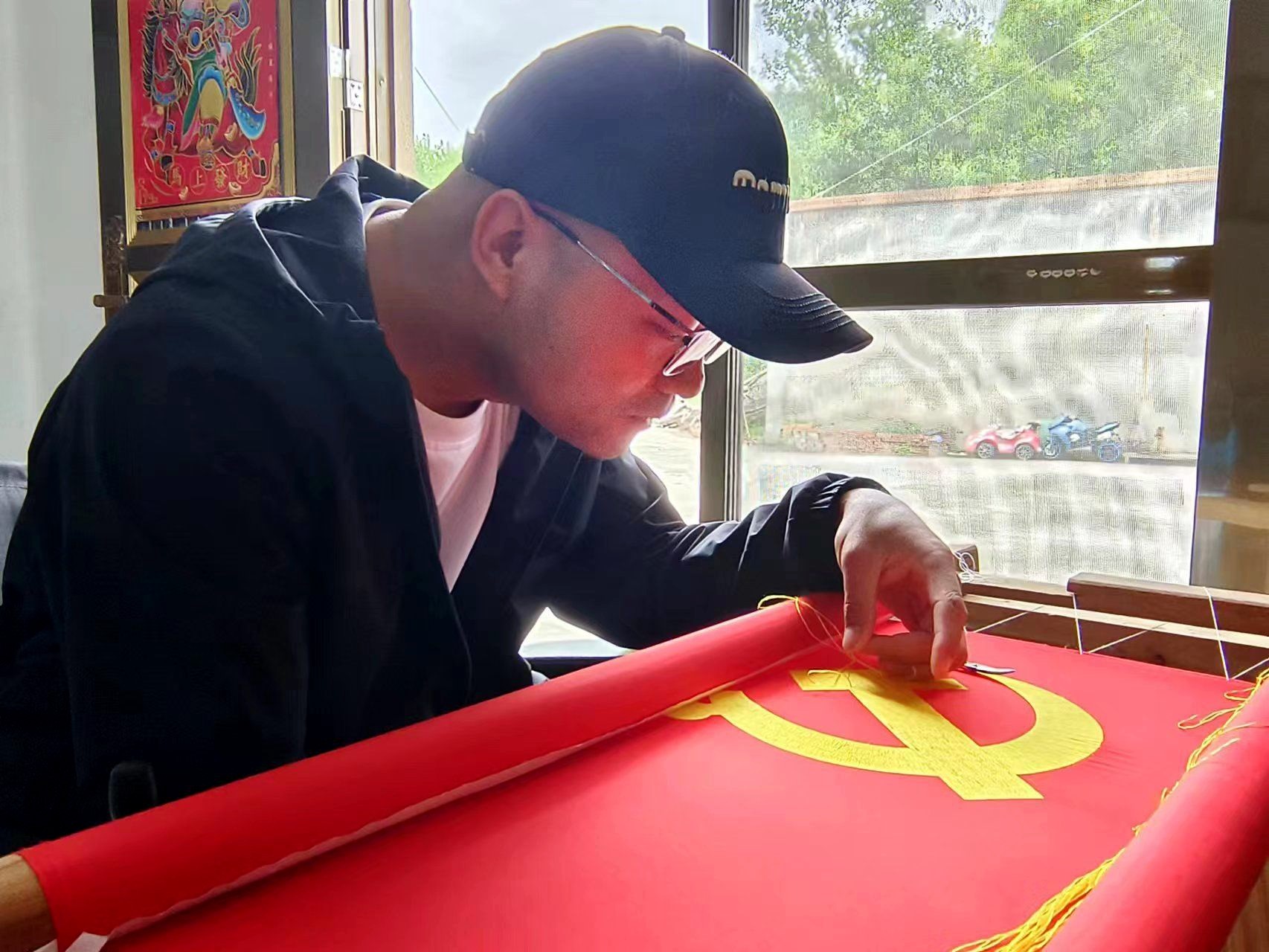 本报讯 (记者林敏通讯员柯勇) 近日,在城关镇白路社区一处山坳里,一面纯手工的党旗正在紧锣密鼓的缝制着,35岁的残疾小伙翟仕海在妈妈雷立华的陪伴和鼓励下化身“绣娘”,用最传统、最朴实的方式表达对党的无限感激、诚挚热爱和衷心祝福。