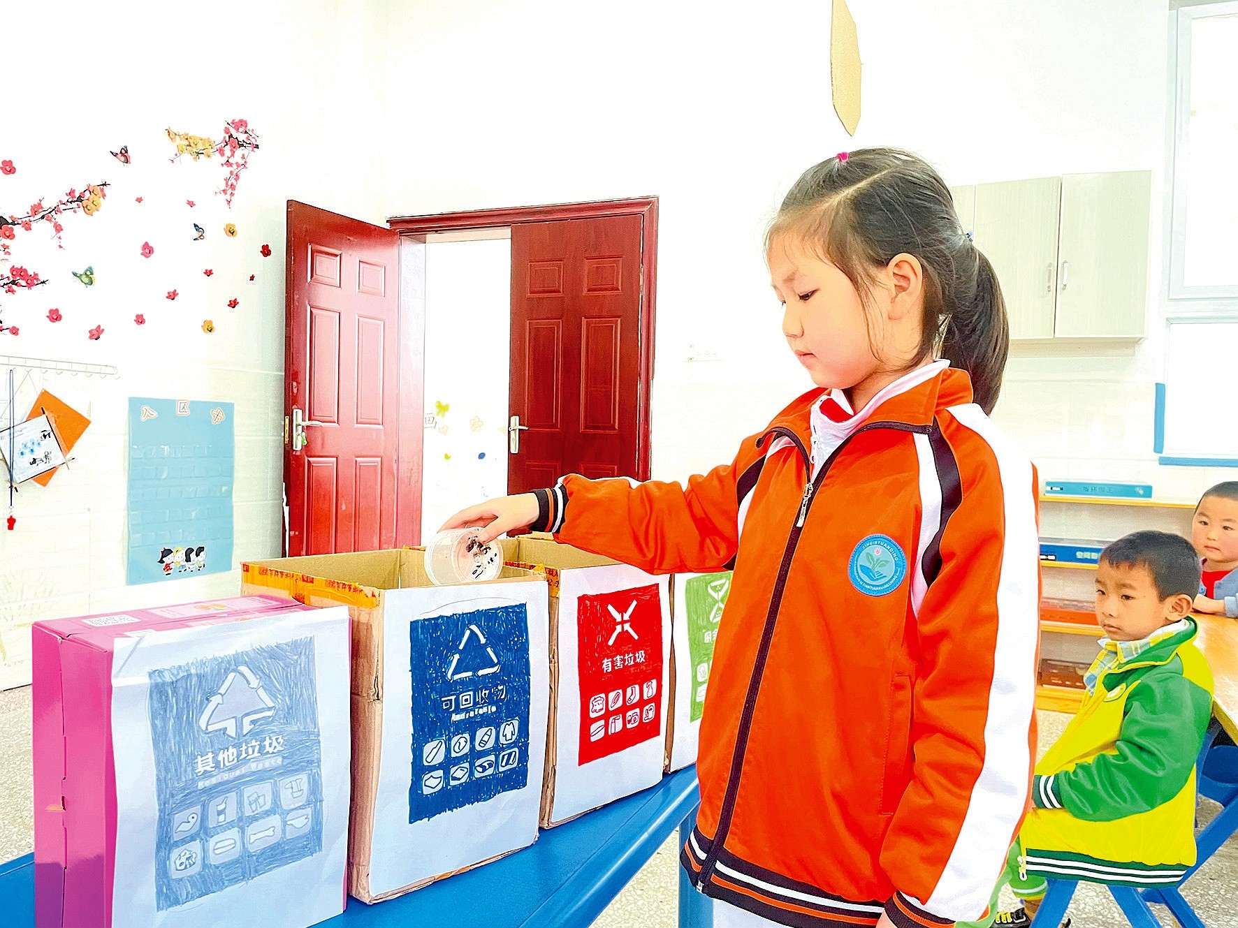 近日,土城镇中心幼儿园开展“垃圾分类,从我做起”主题教育,教师们利用手工制作垃圾分类箱,帮助孩子们了解垃圾分类的意义和垃圾分类的基本知识、懂得如何将垃圾进行分类、知道垃圾分类的重要性,让环保的种子在孩子心中生根发芽。 (罗润雪 摄)