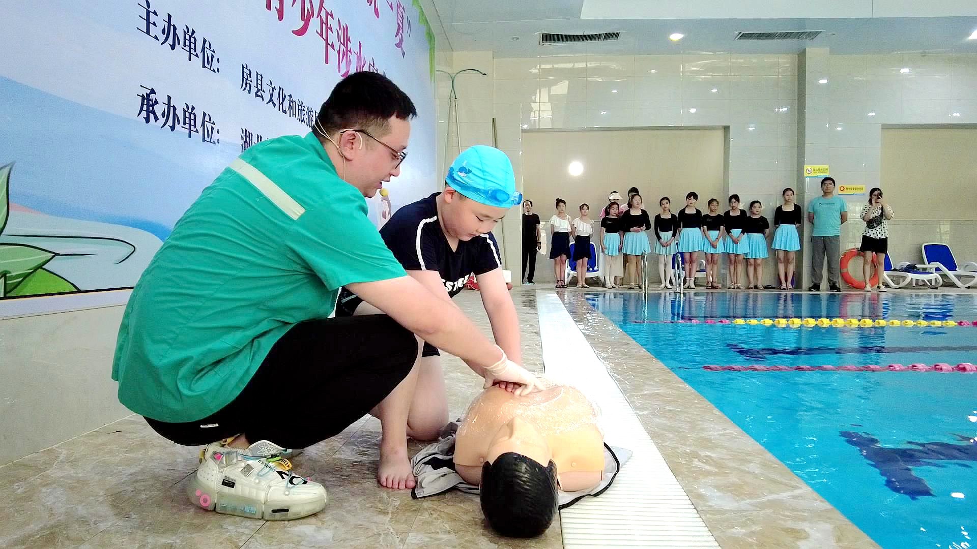 近日,县人民医院急诊科医生利用现场的模拟人等物品指导学生开展溺水施救情景模拟。县文旅局联合县教育局、县人民医院等开展以“珍爱生命,护航一夏”为主题的暑期青少年涉水安全演练活动,带领学生及救生员学习并实操心肺复苏及海姆立克等急救知识,讲解如何防溺水,如何开展应急自救、创伤救护等安全知识,提升应对突发情况的技能,筑牢安全防线。