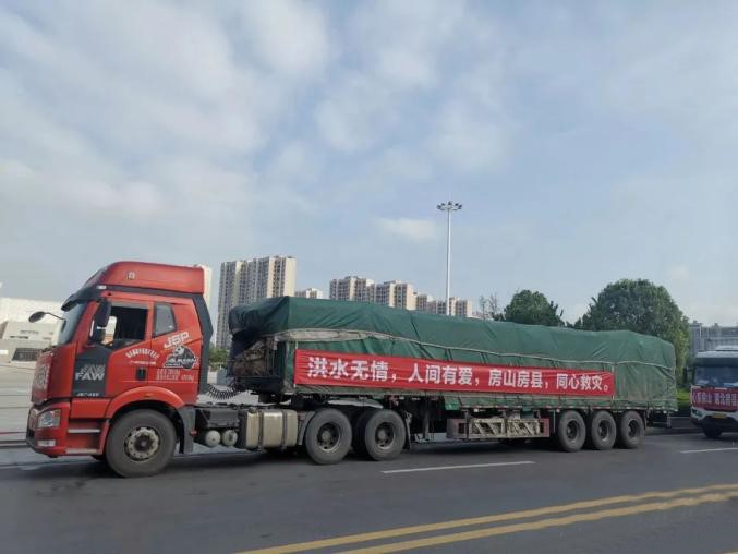 8月4日清晨,满载房县救援物资的3辆大挂车缓缓驶入十房高速公路,奔赴北京房山受灾地区。据悉,7月下旬,受台风“杜苏芮”影响,北京市房山区遭遇连续强降雨,对人民生产生活秩序造成严重影响。房山区洪灾发生后,我县紧急行动,星夜兼程筹集200万元现金,以及大米、矿泉水、黑木耳、红薯粉条等价值70万元的慰问物资,紧急驰援房山区。(杜达巍 摄)