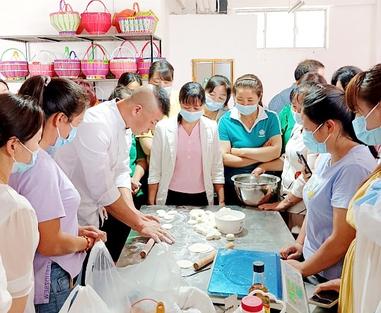 近日,大木厂镇组织开展以“提升专业技能,拓宽就业渠道,增加群众收入”为主题的中西式面点技能培训,通过理论讲解、讲师示范、学员实操等环节,对原材料选取、调配比例、制作技巧、火候、时间和注意事项有针对性地进行讲解和指导,确保学员融会贯通掌握实用技能,帮助群众实现就业增收。 (王蕴广 摄)
