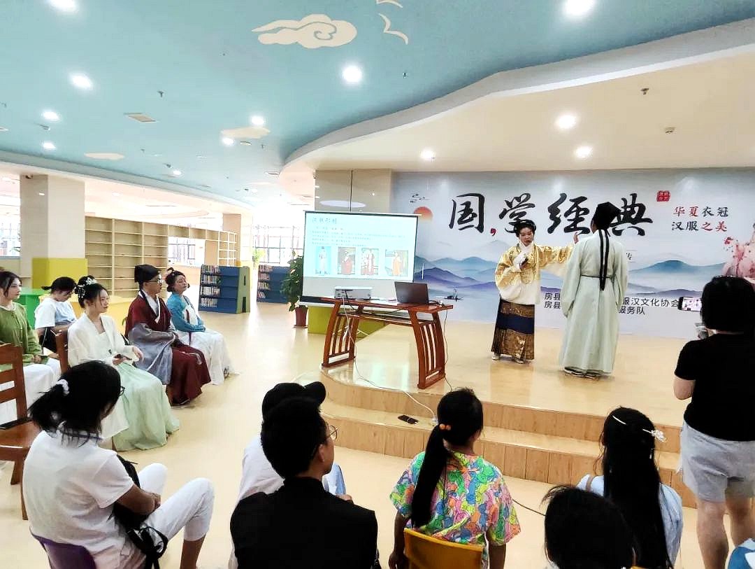 近日,县汉服汉文化协会在县图书馆向市民讲解汉服的由来与汉服的基本形制。此次活动,让市民直观地感受传统服饰展现的“仁、义、礼、智、信”的文化内涵,在互动中加深对汉服文化的理解。(马天鑫 摄)