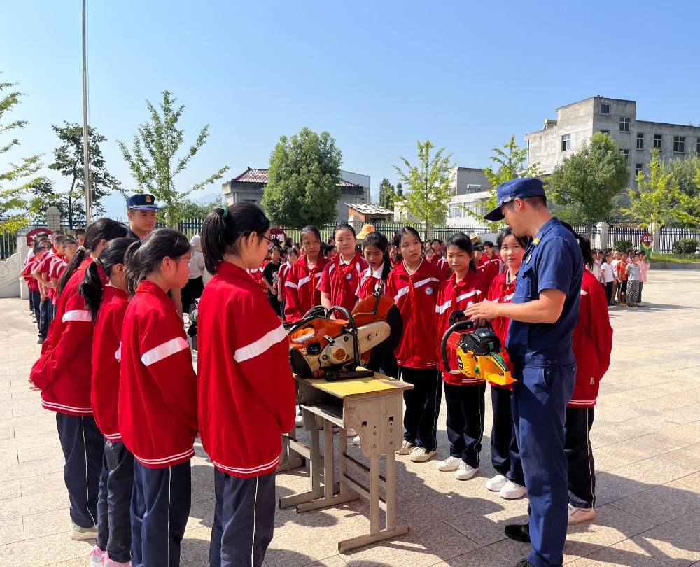 近日,消防员为五龙小学的师生讲解各类消防器材装备的使用方法和功能。在县消防救援大队红塔中心站开展的消防安全进校园主题教育中,消防员从校园常见的火灾类型、如何逃生自救等方面进行讲解,切实增强师生的消防安全意识和自防自救能力,筑牢校园消防安全防火墙。 (彭磊 摄)