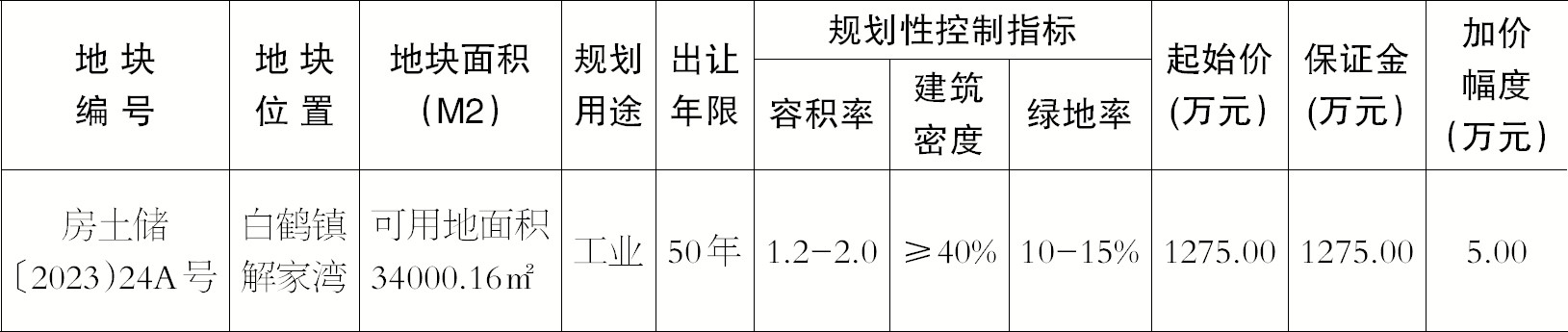 2、本次出让的宗地以现状条件出让,该宗地由白鹤镇人民政府负责交地。