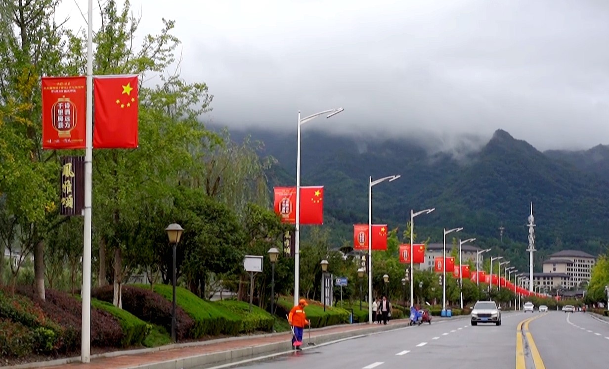 国庆节前夕,县城关执法局组织人员在城区十余条主次干道周边路灯杆上悬挂国旗近3000面。城区各商场、超市也纷纷挂起国旗,鲜艳的五星红旗随风飘扬呈现出一道道靓丽风景线,洋溢着喜庆祥和的节日氛围。 (李硕 摄)