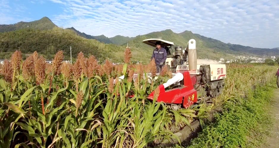 本报讯 (记者秦珊珊通讯员隆正梅) 眼下正是高粱成熟的季节,中坝乡3000余亩的高粱种植基地,联合收割机在田间穿梭,农户正抢抓晴好天气收割,一派丰收的繁忙景象。