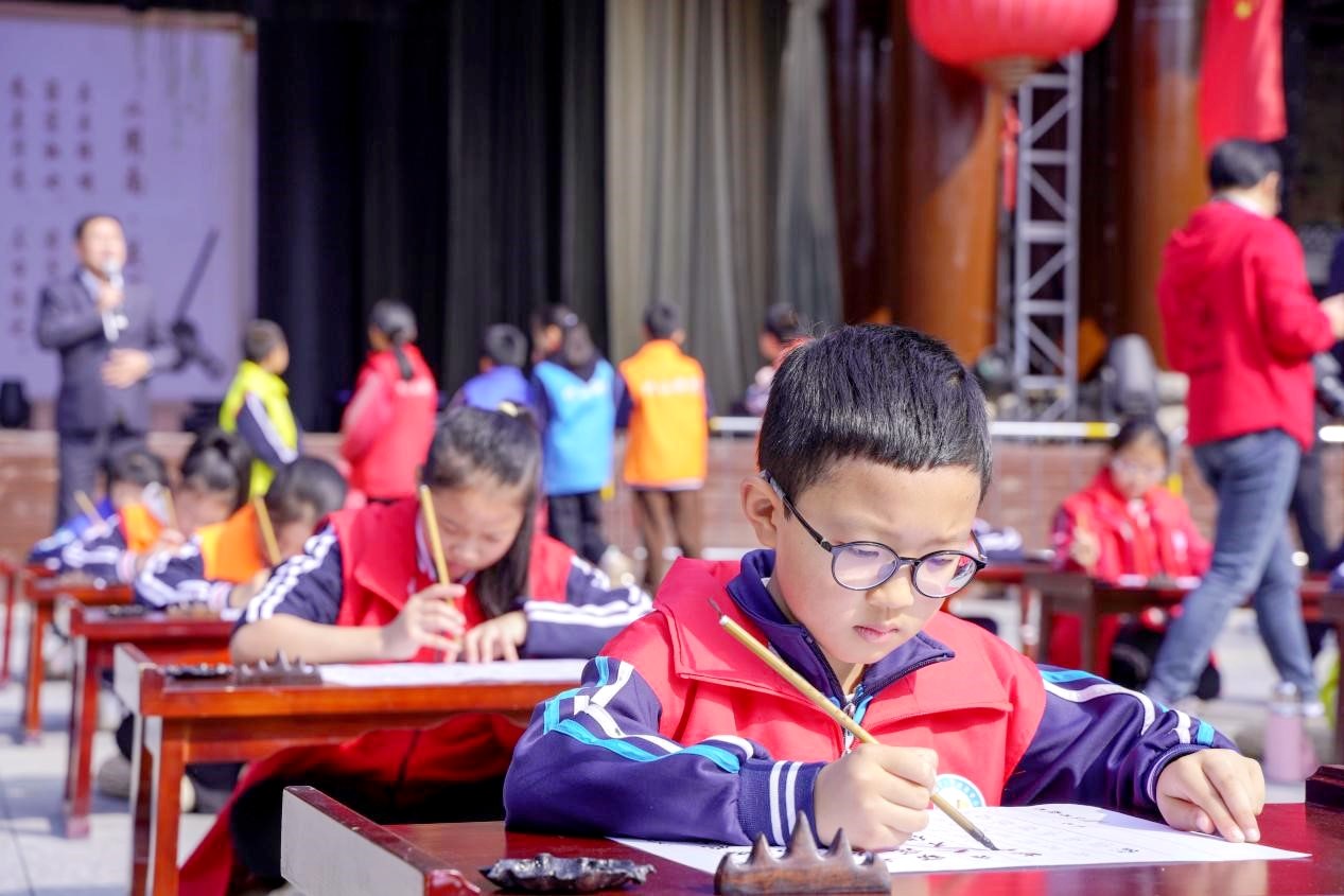近日,来自竹山县宝丰镇施洋小学五年级的学生们到西关印象景区开展秋季户外研学实践活动,学生代表在体验《沐手抄经》。活动中,学生们观看《周礼迎宾》《蒹葭》《变脸》等表演,参观雷天明纪念馆和黄孝子祠,不仅拓展了视野,增长了知识,还感受了传统文化、红色文化和忠孝文化的魅力。