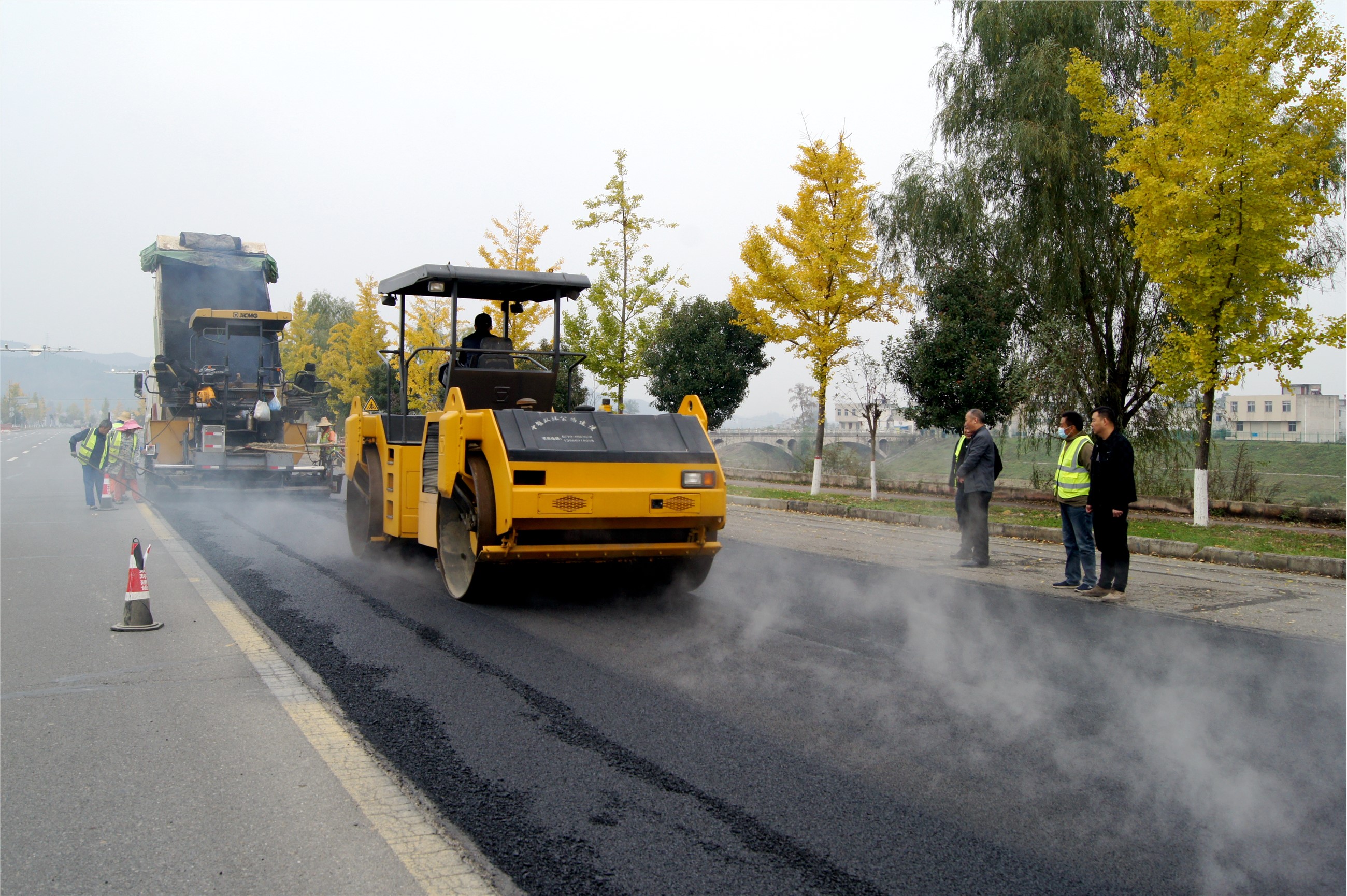 近日,在G346房县北门河桥至军马河桥段路面中修施工现场,摊铺机和压路机正忙碌运转。县交通公路部门坚持倒排工期、全员上阵,采取“半幅施工、半幅通行”的模式,全力以赴抢工期、抓质量、保安全。目前,该项目已完成路面铺设10.5公里,预计年内全面竣工。(王东 刘珊珊 摄)