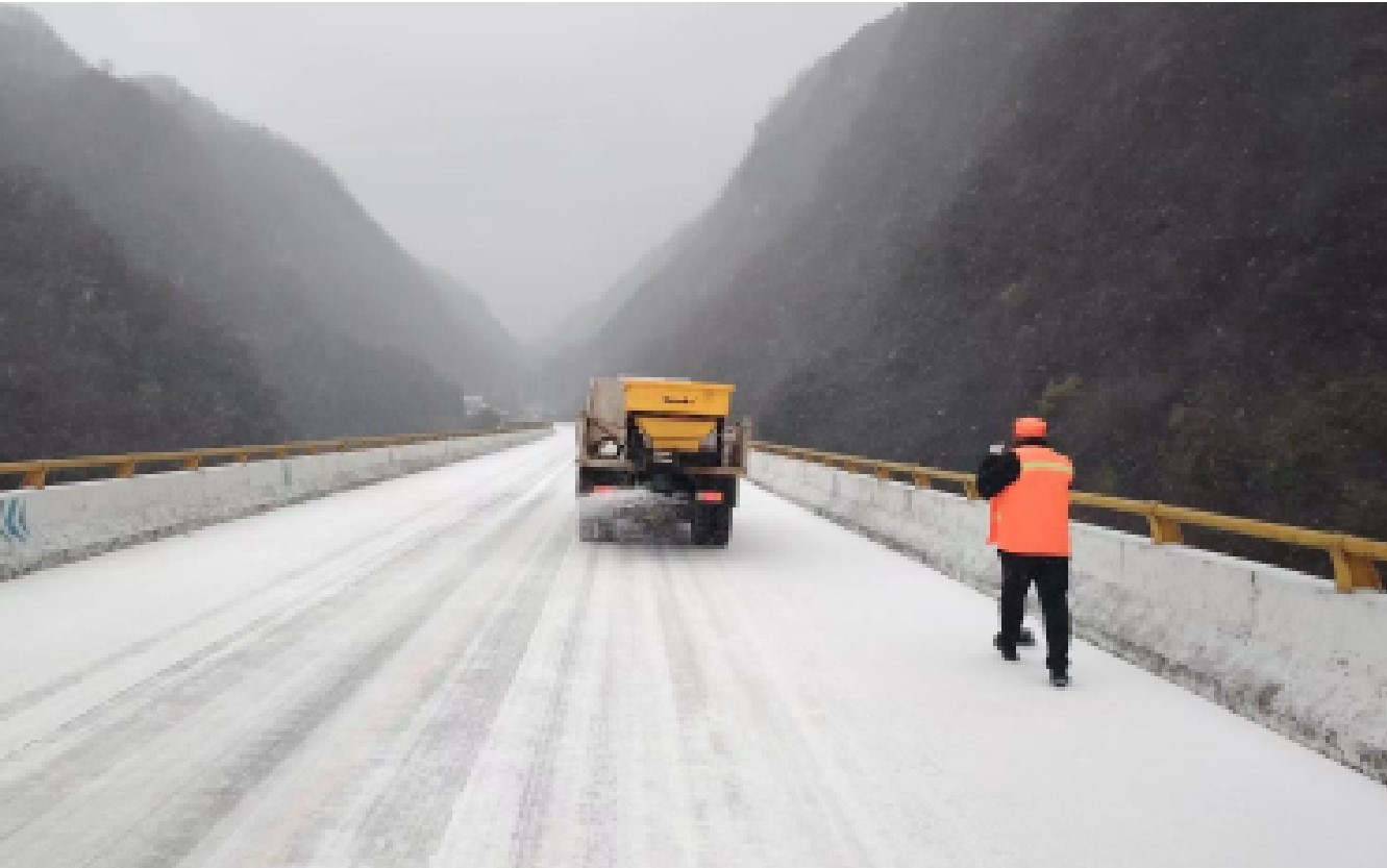 县交通运输局及时启动应急预案,组织系统各单位全员上阵,累计投入防滑扫雪及应急保障人员92人次,融雪剂洒布车4台次,除雪铲车1台次,播撒融雪剂1.6吨,播撒防滑料50余方,保障了全县国省道干线畅通。 (王东 摄)